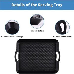 🧿Anti-slip Technology: Rectangular non-slip service tray, suitable for indoor or outdoor dining. The surface is designed with non-slip patterns, so tableware and drinks will not slide or fall. Stable snack supply