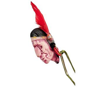 If you're a cultural enthusiast and appreciate the unique and meaningful diverse cultures of Native Americans, this pin is a must-have accessory for your collection. This pin is crafted from an old plastic material, featuring an intricately detailed and colored piece that replicates a Native American. The striking Indian Chief profile is facing right, its bold design and cultural significance make it a versatile piece that complements a variety of styles. The vibrant colored headband with red colored feathers and knotted green string dangling from his ear makes it a great representation of the strength, wisdom, and resilience of Indigenous peoples. The Indian Chief's head measures approximately 1.7 inches in length. The back has a secure locking pin that functions properly and is sturdy ensuring that it stays firmly attached to your clothing or accessory throughout the day. The simple versatility of this piece makes it a fashionable addition to any outfit, a captivating accessory for cultural gatherings, or a lovely gift for your loved one.