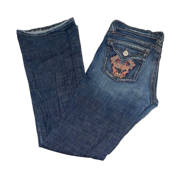 Plastic by Gly Distressed Collin Flap Mid-Rise Boot Cut Denim Jeans Size 11