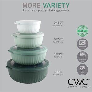 🧿Beautiful Cook with Color bowls will enhance your cooking experience in class! Our 8 piece small mixing bowl set with lids add a decorative touch and functionality. The chic colors make them great for kitchen to table serving.
