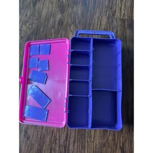 Get organized with this fun and colorful tackle craft box! Perfect for storing your fishing gear, art supplies, or any other small items. The box features a playful combination of pink, blue, and yellow, making it a cheerful addition to your storage solutions. It's in great condition and ready to bring some order to your life. Bid now and make it yours!