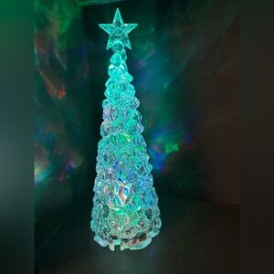 Really cute Christmas tree with a star topper. Perfect for holiday decor. Can use as tabletop …or even as a nightlight …you decide