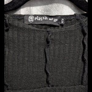 Plastik Wrap Long Sleeve Cold Shoulder Top Medium Black Dark Grey