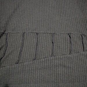 Rare find, Canadian designer! Dark grey/black panel/patchwork top, square-ish neckline, open shoulder design. Poly/Rayon/Lycra.