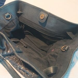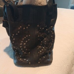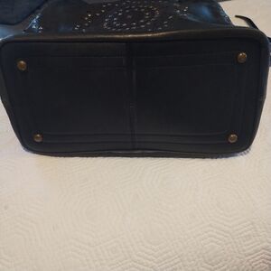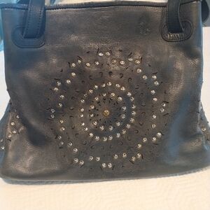 Platania Studded Lazer Cut Black Italian Leather Satchel with Swirl Design