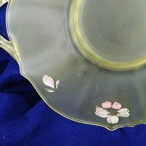 * Vintage Plate Hand Painted Florals on Underside Frosted Matte Finish Double Handles
