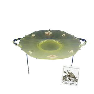 Plate Hand Painted Florals on Underside Frosted Matte Finish Dbl Handles Vintage