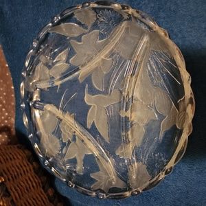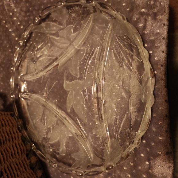 Now this is one beautiful serving platter!!! It's a crystal engraved 4 sections with one of the prettiest themes I've ever seen!! Almost too pretty to use!! I just don't do the fancy dinners anymore so I thought it'd be nice for someone else to enjoy!! Easter is right around the corner and with the hummingbird theme I thought it'd be PERFECT!!!