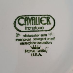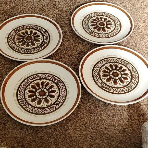 Used Cavier ironstone plates. 3 plates and 1plate that is a little bigger than the others. Dishwasher safe. Very pretty bold design.