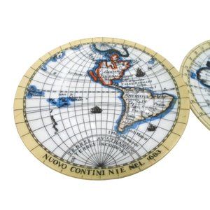 Very interesting coasters/small plates with antique maps printed on them from 1683.