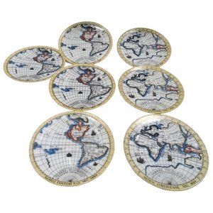 Plates Miniature Map 1683 Vintage Set of 7 4 New World 3 Old World 3 Inches