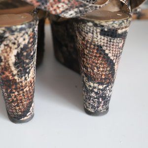 Platform, barely worn, ankle strap stable wedge. For almost any occasion.