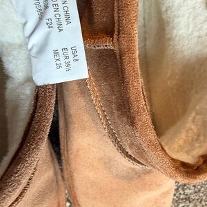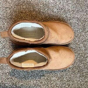 Platform boot with pull on/slip on design. Only worn once or twice. There will a spot shown on the top of the boots (see photos) otherwise in good condition