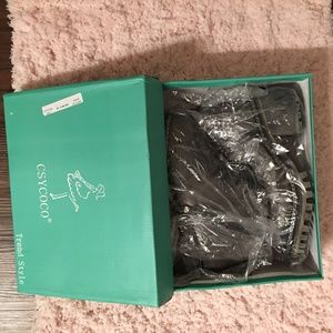 These platform booties are dark grey. They have not been worn because they are too small. They say size 8 but they could probably fit a 7.5.