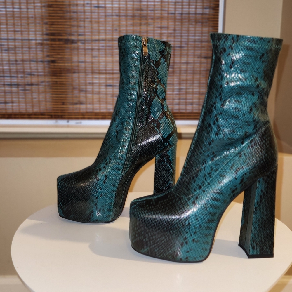 Faux snakeskin booties from Simmi Shoes. They are just a little too big so I am selling them. Just tried on, never worn, still in box.
