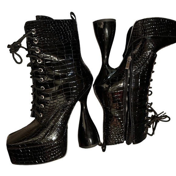 6 inch heel and 2 inch platform. Zipper enclosure, very well loved. Ships same day
