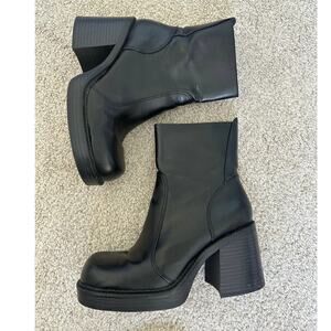 Platform Boots Y2K 2000s black chunky stacked heels 7 vintage retro ankle Soho