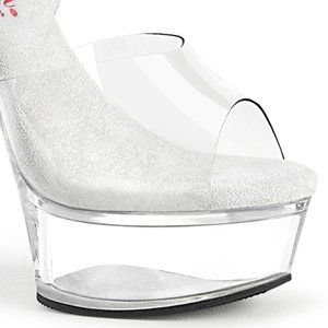 6" High Heel, 1 3/4" Platform Comfort Width Shoes. Clear Vamp with White Insole.
