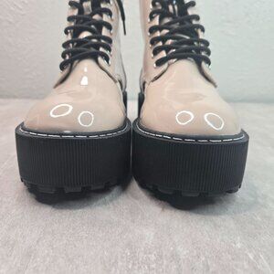 Platform Combat Boots Chunky Grunge Y2k Lace Up Hiker Platform Patent Booties 8 (B1-191)