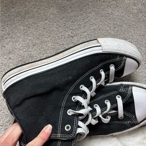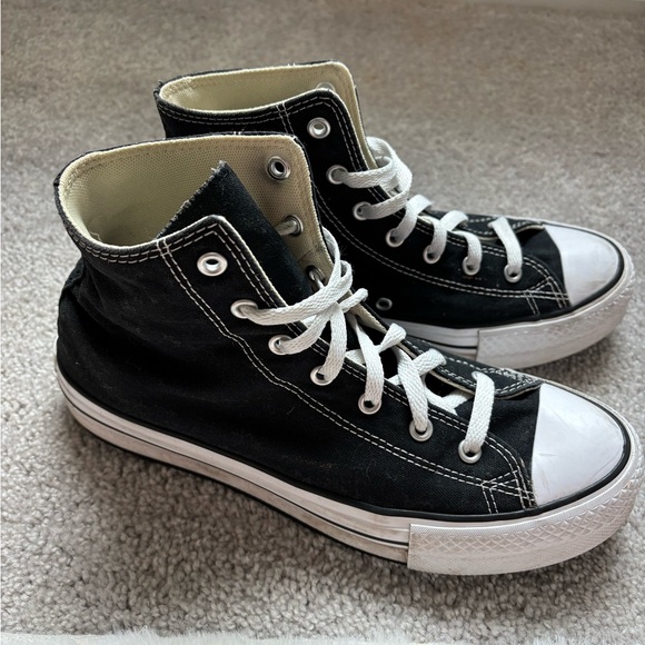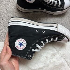 Black and white platform converse! These have been worn several times as photos show but the soles are in great condition with plenty of life left in them! They are 6.5 kids/Eur 39 and women’s 8.5