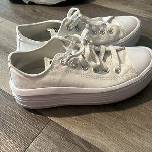 White platform converse. Small stain on heel of right foot and on the toe of the right one as well. Still very good condition and only worn a few times