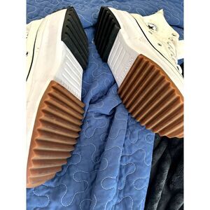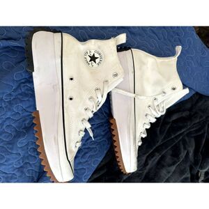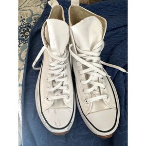 Totally hip and in style. White Platform Converse. I LOVE THESE but I have a problem with my ankle and these don't work with that lol! My loss is your gain! They are basically new, work only once and you can see that by the soles!