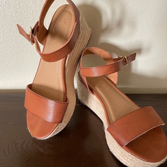 Take these on your next tropical vacation. You’ll make a statement at brunch or dinner. They’re a gorgeous camel color with woven rattan at the platform.