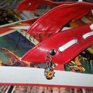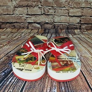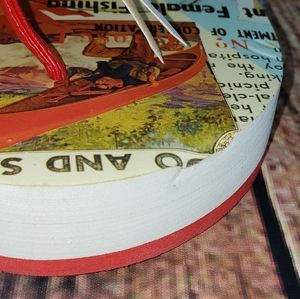 Can not see any signs of wear on shoes. Front of left shoe does have a small dent in the front (last photo). Size is a Medium- 6/7