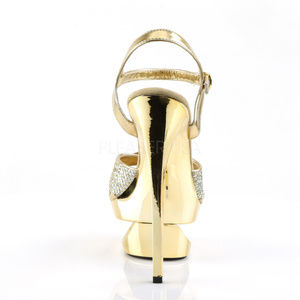 6 1/2" High Heels, 1 3/4" Platform Crisscross Ankle Strap Shoes. Silver Glitter and Gold Chrome Platform.