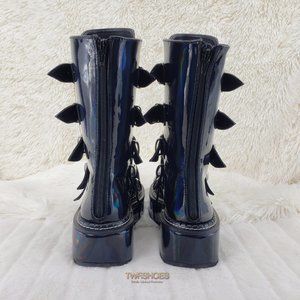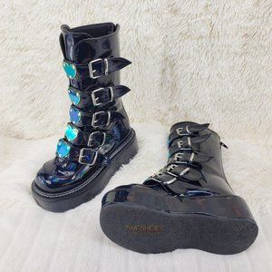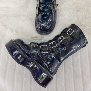 2" Platform Hologram Heart Metal Plates Mid Calf Boots.