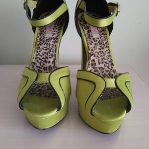 Qupid lime green platforms. Size 8. 5" heel. Are in good condition with only a little graying at toes and a little nick out of sole of right shoe (see pictures). Is not noticeable when wearing.