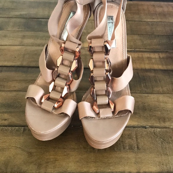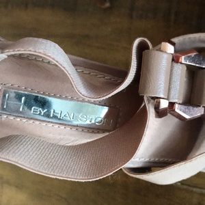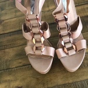 Platform nude and rose gold heels. H By Halston. * note please note that the straps on the platform heels or a stretchy material. Please take a look at the photos and notice the little songs in leather.