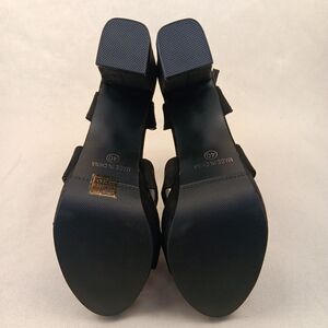Platform Heels With Ankle Strap Black Faux Suede Women's Size 7.5