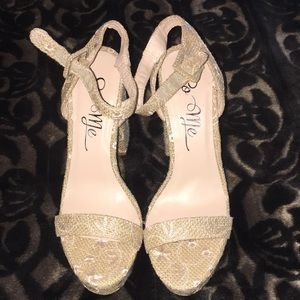 Cream platform heels. Never been worn . Size 8.5. 5 1/2” inch high.