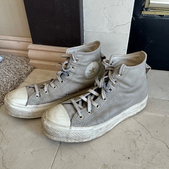 Neutral colored high top platform Converse! They need a good washing, and would be good as new!