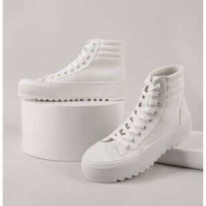 Platform High-Top Skate Sneaker White Canvas Lace-up Women's Size 9 NEW Shein