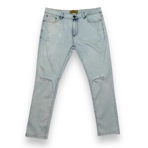 Platform Jeans Mens W36/L30 Slim Stretch Light Acid Wash Blue Denim Ripped Knees