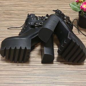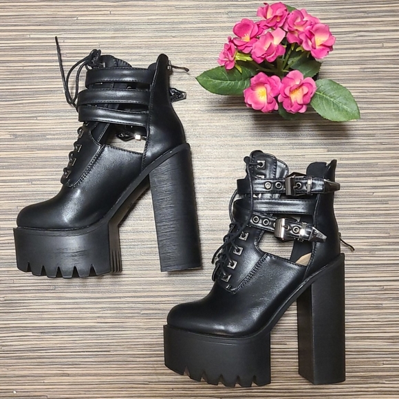 Obsessed with these boots. Seriously. They're just too tall for me. 6 inch heel with roughly 2 inch platform in front. Never been used, except to wear them around the house and admire them in the mirror. ๐ Booties say 37, they fit my 6.5 feet like a dream.