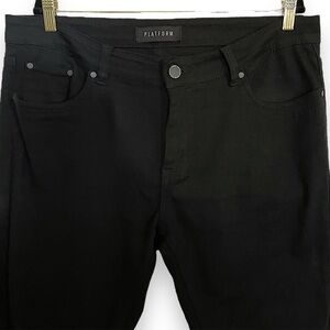 Platform Men’s Jeans 36/30 Modern Classic Slim Stretch Black Denim Ripped Knees
