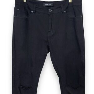 Platform Men’s Jeans 36/30 Slim Stretch Black Denim Ripped Knees