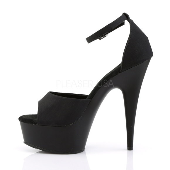 6" High Heel, 1 3/4" Platform Peep Toe Shoes. Black Potosoie.