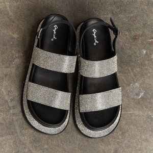 Add a touch of glamour to your stride with these Qupid Shine On Platform Rhinestone Slingback Sandals in Black! These sandals are designed to make you shine and stand out, radiating elegance and style. Pair them with your favorite dresses, skirts, or jeans for a fashion-forward look that's sure to turn heads.