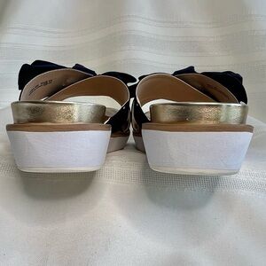 Platform Sandal Flip Flop Nina Garda Navy Satin Gold Sz 5 EUC