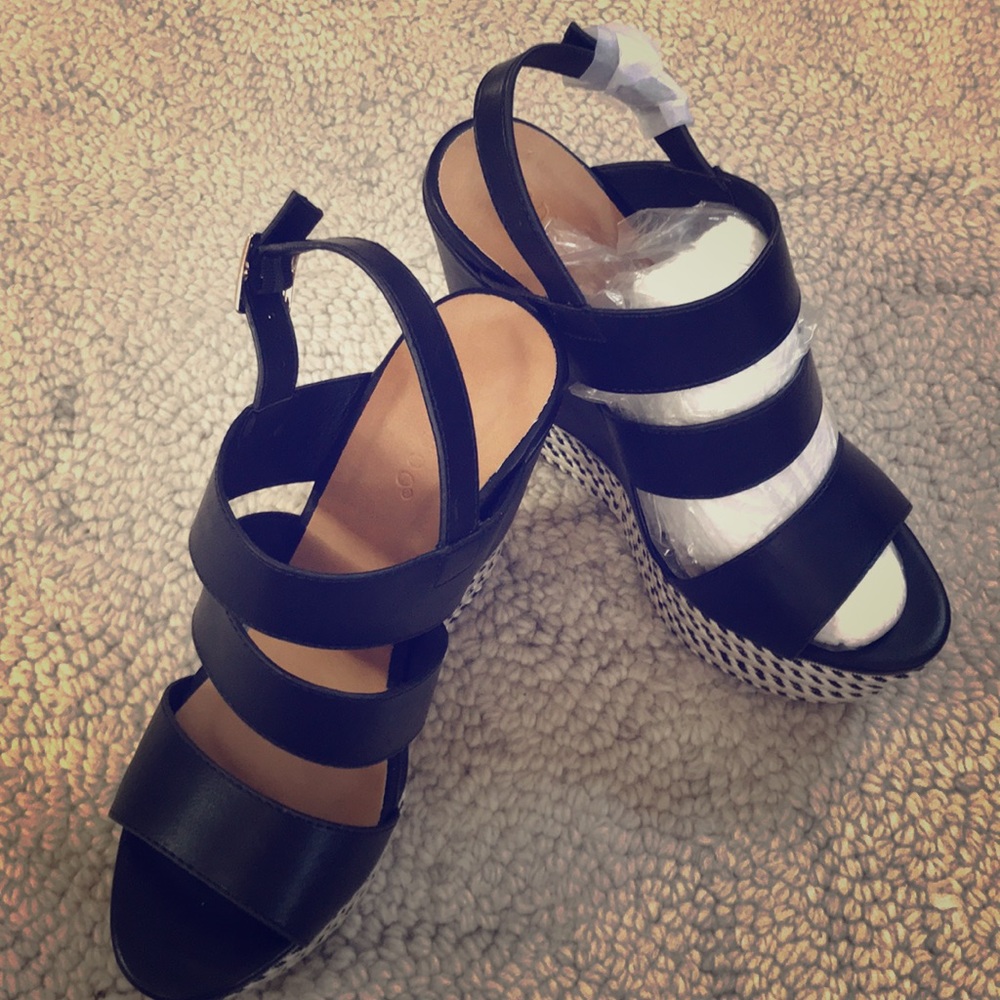 New never used black and white platform sandal.Size 71/2