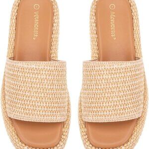 Step into the season with ease and elegance in our women s raffia platform sandals. Featuring a modern flatform silhouette and classic espadrille styling, these sandals elevate your summer look literally and figuratively. Crafted with a soft woven upper and lightweight cushioned footbed, they provide breathable comfort that lasts from morning beach strolls to evening boardwalk dinners. The slip-on design makes dressin