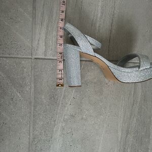 Platform Silver Strappy Block Heel Sandals Size Size 8.5 With 5” Heel
