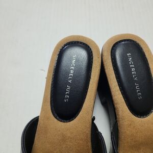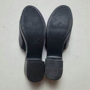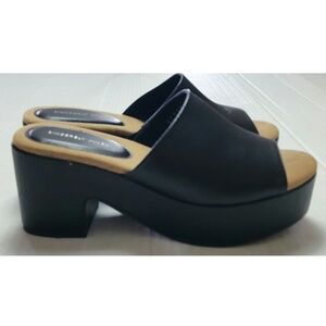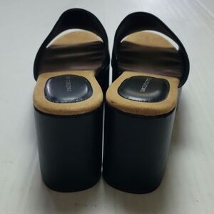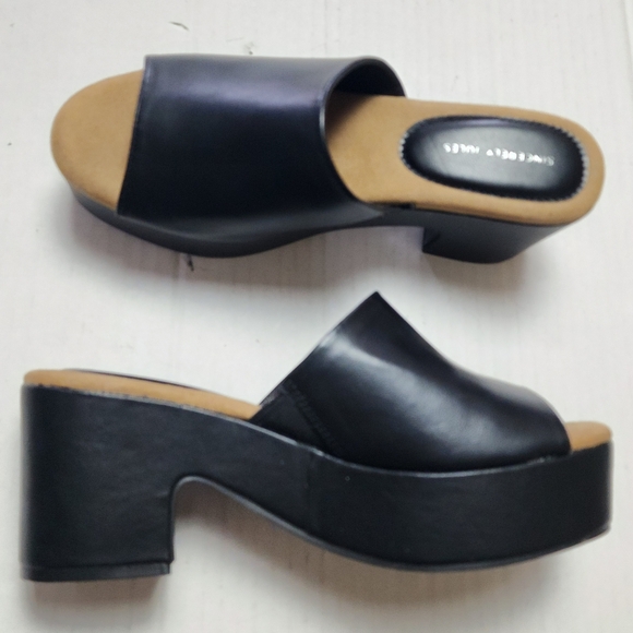 Black slide sandals with platform and heel