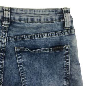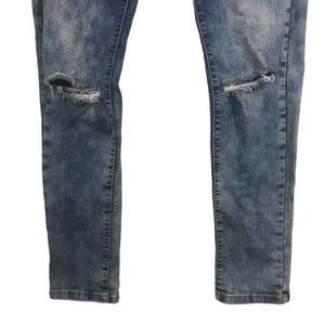 Platform Slim Skinny Stretch Denim Jeans Ripped Med Blue Stressed Size 29/30.