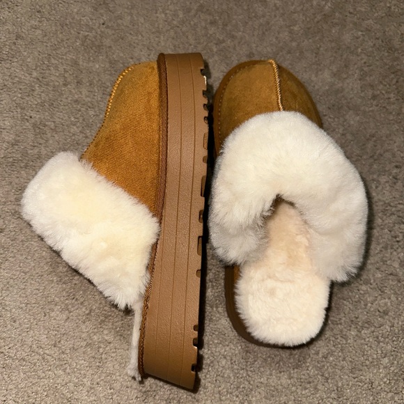 Step into comfort with these cozy tan shearling slippers. Perfect for lounging at home, these slippers offer warmth and style.