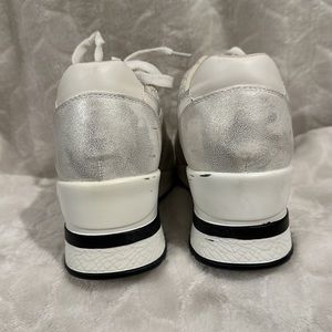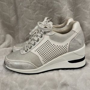 Cute platform sneakers. Glitter and camp gray white and silver. A few scuffs a shown in pics. Only worn once. Bundle and save 25%.